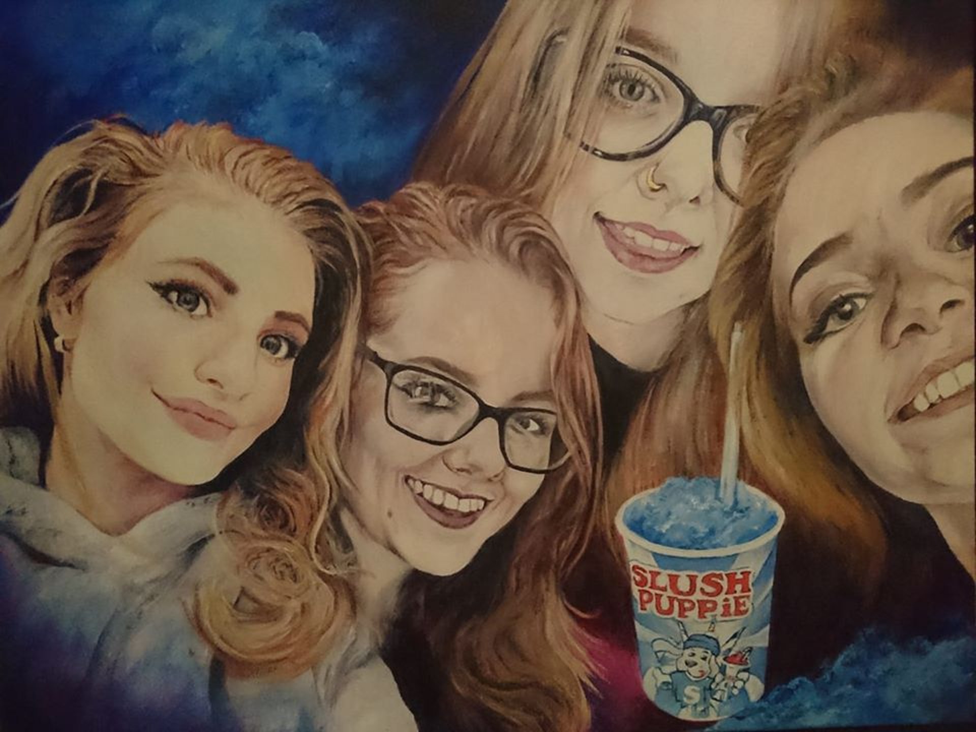 Acrylic and pencil portraits which reflect both realism and personality in human relationships.